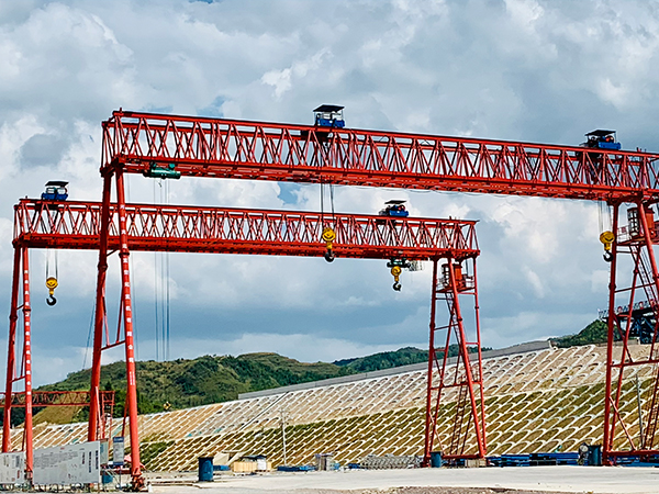 1、龍門吊電線的出線端口應該襯上木質的套管或者膠皮,在露天環境運用中的起重機應該用瀝青封口并使管口向下曲折。有也許的話能夠將電線管刺進設備的進線孔里邊。操作室的出線孔要開在側板上,不能開在頂部。